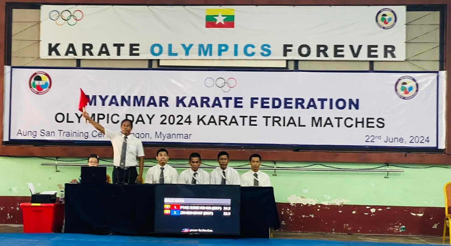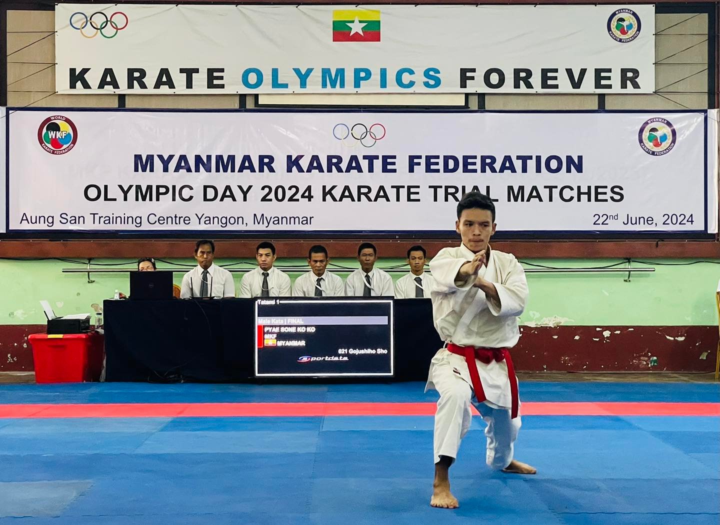 အိုလံပစ် အထိမ်းအမှတ် ကရာတေးဒို ပြိုင်ပွဲ ကို အောင်ဆန်းအားကစားကွင်း ကရာတေးလေ့ကျင့်ရေး ခန်းမတွင် ကျင်းပပြုလုပ်ခဲ့ပါသည်။